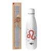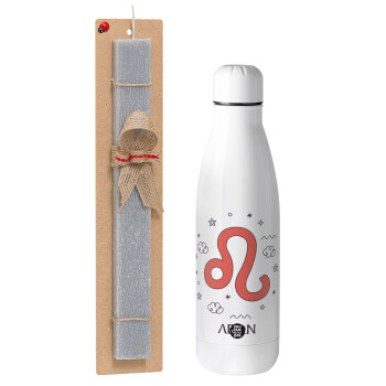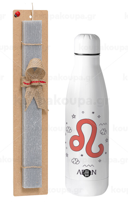 Ζώδια Λέων, Easter Set, metallic stainless thermos bottle (500ml) & scented flat Easter candle (30cm) (GRAY)