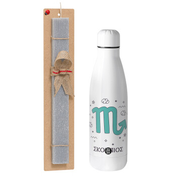 Ζώδια Σκορπιός, Easter Set, metallic stainless thermos bottle (500ml) & scented flat Easter candle (30cm) (GRAY)