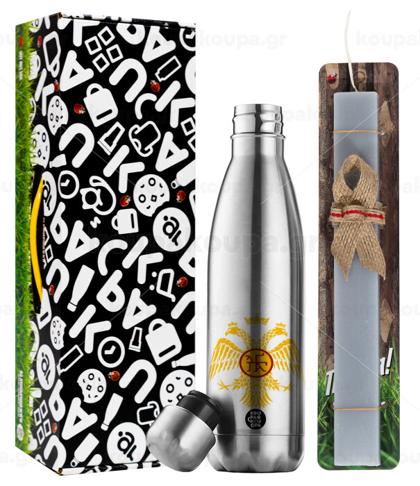 Byzantine Empire, Easter Set, metallic stainless thermos flask (500ml) & scented flat Easter candle (30cm) (GRAY)