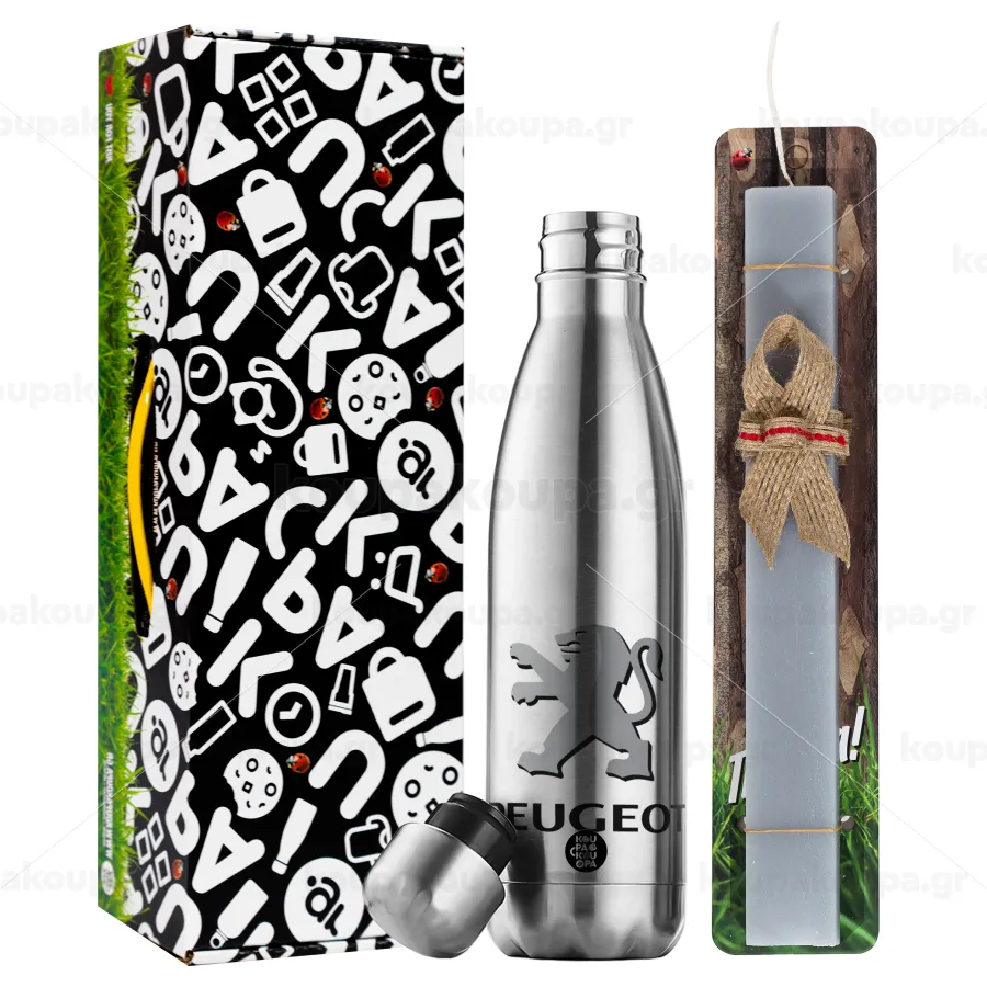 Peugeot, Easter Set, metallic stainless thermos flask (500ml) & scented flat Easter candle (30cm) (GRAY)