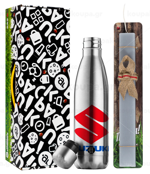SUZUKI, Easter Set, metallic stainless thermos flask (500ml) & scented flat Easter candle (30cm) (GRAY)