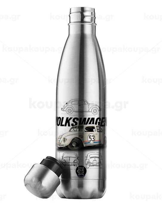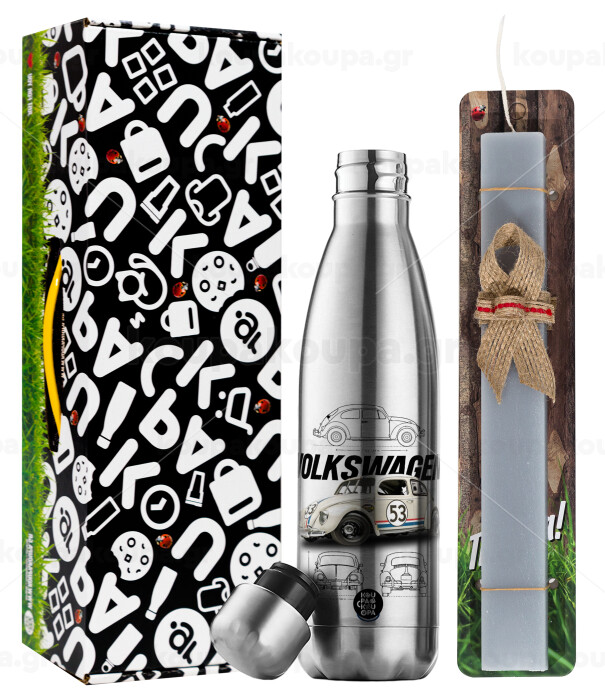 Volkswagen Beetle, Easter Set, metallic stainless thermos flask (500ml) & scented flat Easter candle (30cm) (GRAY)