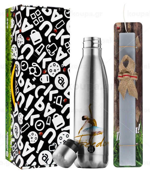 Gold Dancer, Easter Set, metallic stainless thermos flask (500ml) & scented flat Easter candle (30cm) (GRAY)