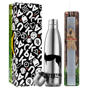 Ace Ventura Pet Detective, Easter Set, metallic stainless thermos flask (500ml) & scented flat Easter candle (30cm) (GRAY)