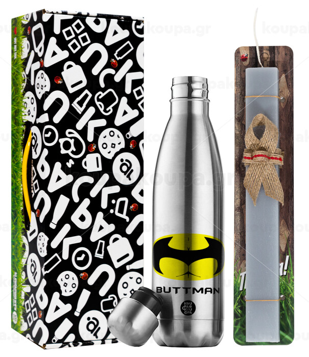 Buttman, Easter Set, metallic stainless thermos flask (500ml) & scented flat Easter candle (30cm) (GRAY)