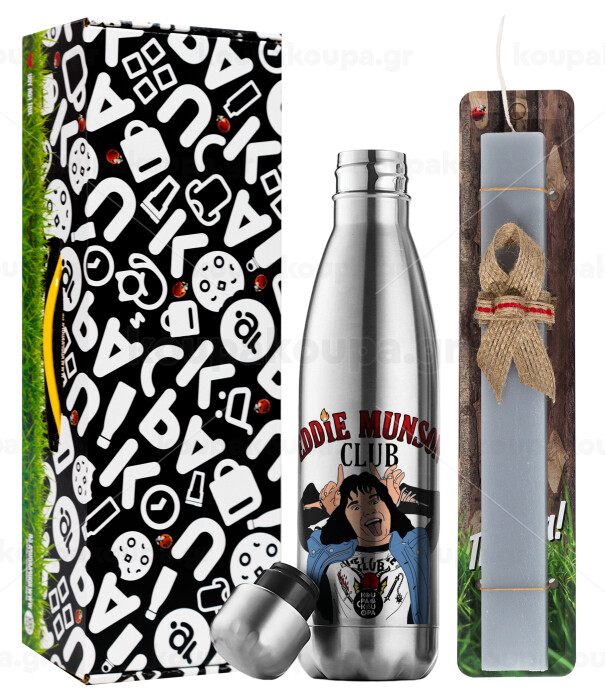 Eddie Munson, Easter Set, metallic stainless thermos flask (500ml) & scented flat Easter candle (30cm) (GRAY)