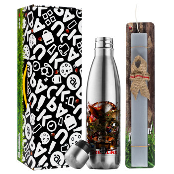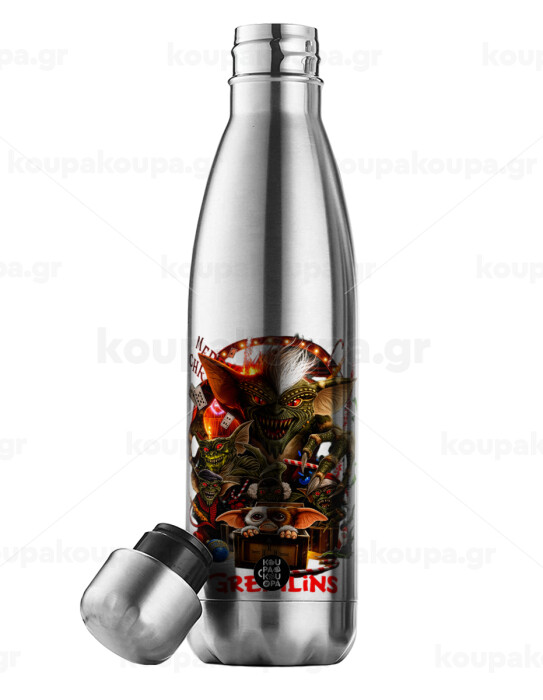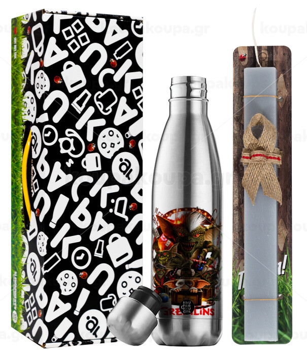 Gremlins, Easter Set, metallic stainless thermos flask (500ml) & scented flat Easter candle (30cm) (GRAY)