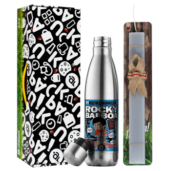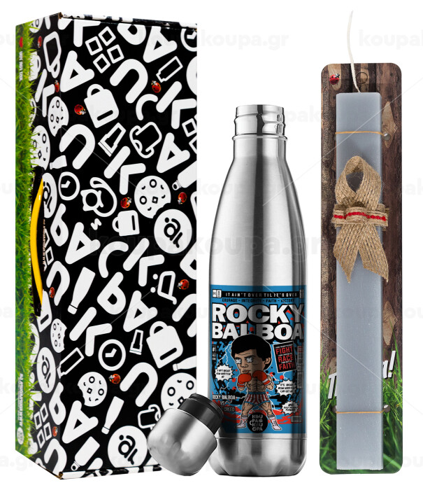Rocky Balboa, Easter Set, metallic stainless thermos flask (500ml) & scented flat Easter candle (30cm) (GRAY)