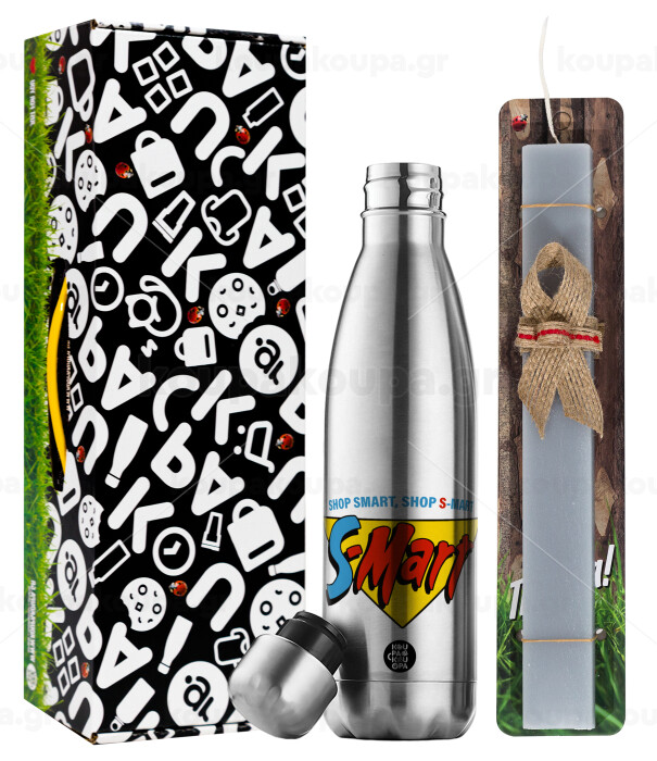 S-mart Evil Dead, Easter Set, metallic stainless thermos flask (500ml) & scented flat Easter candle (30cm) (GRAY)