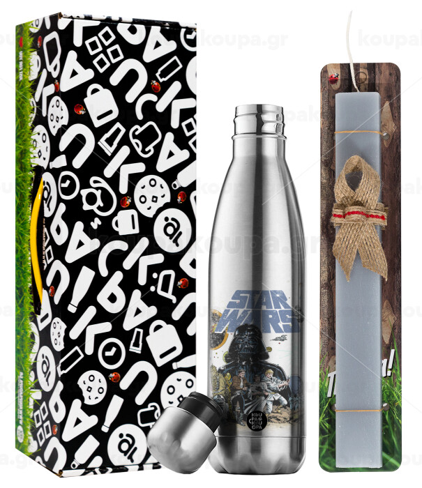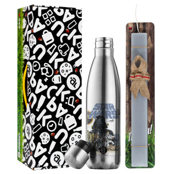 Star Wars, Easter Set, metallic stainless thermos flask (500ml) & scented flat Easter candle (30cm) (GRAY)