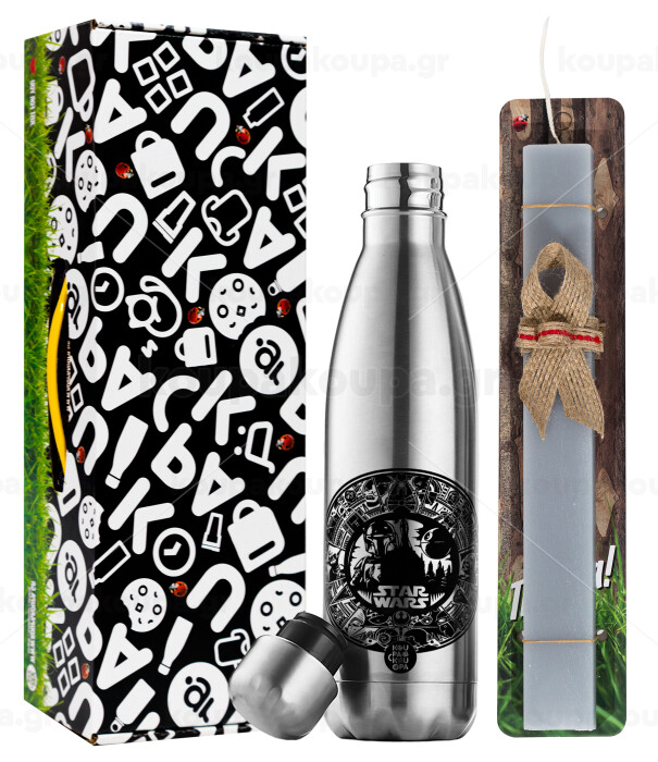 Star Wars Disk, Easter Set, metallic stainless thermos flask (500ml) & scented flat Easter candle (30cm) (GRAY)