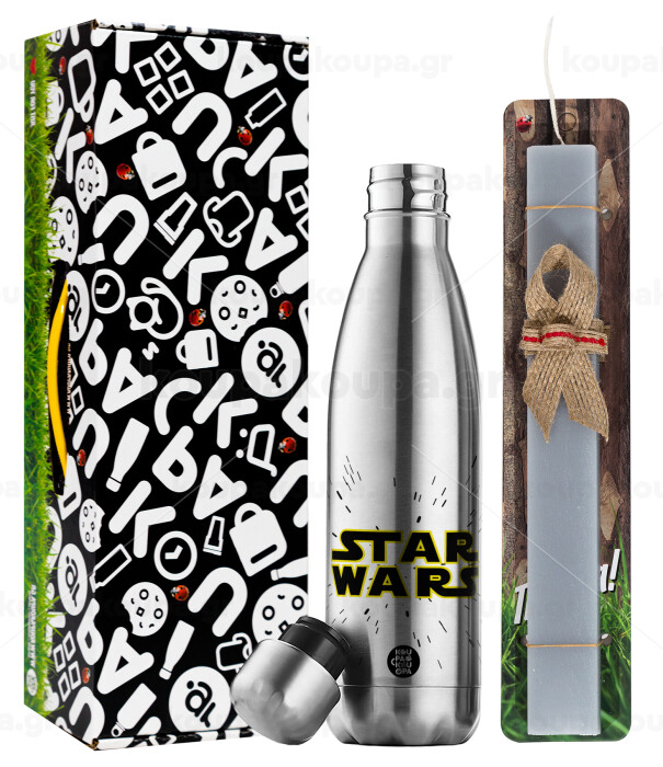Star Wars, Easter Set, metallic stainless thermos flask (500ml) & scented flat Easter candle (30cm) (GRAY)