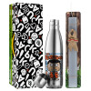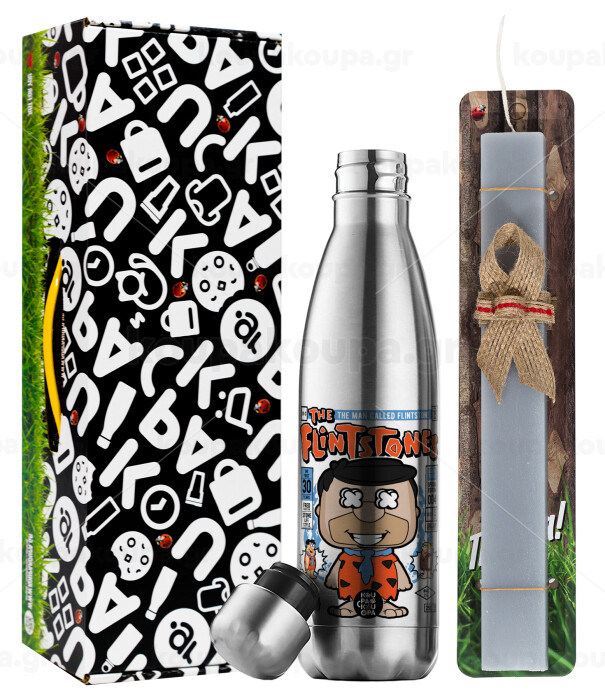 The flintstones, Easter Set, metallic stainless thermos flask (500ml) & scented flat Easter candle (30cm) (GRAY)