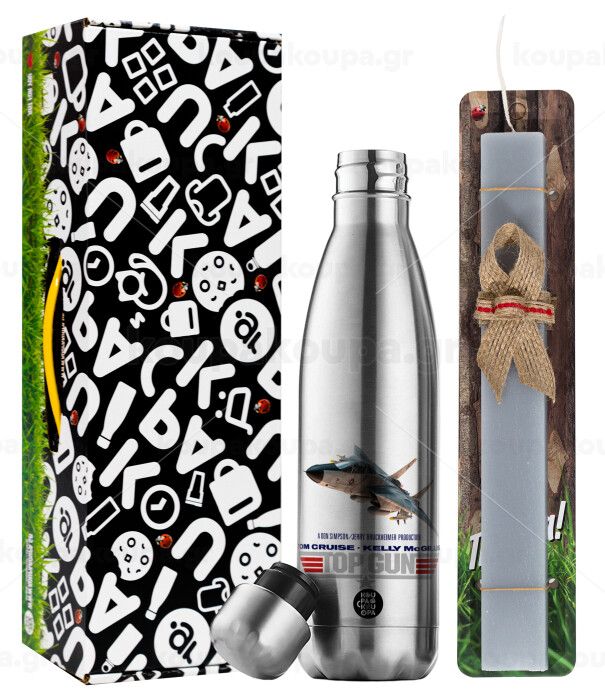 Top Gun, Easter Set, metallic stainless thermos flask (500ml) & scented flat Easter candle (30cm) (GRAY)