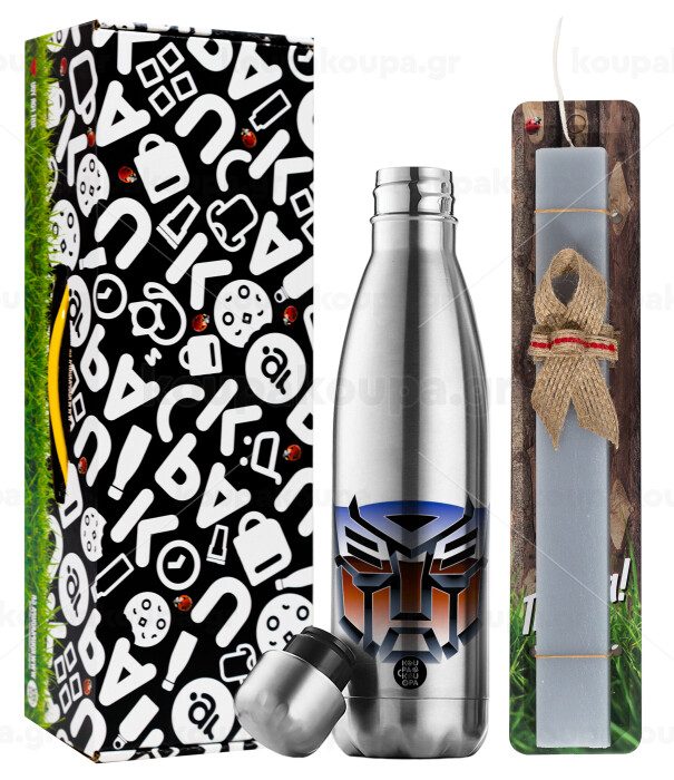 Transformers, Easter Set, metallic stainless thermos flask (500ml) & scented flat Easter candle (30cm) (GRAY)