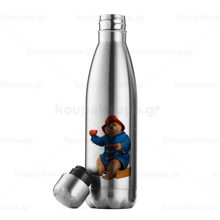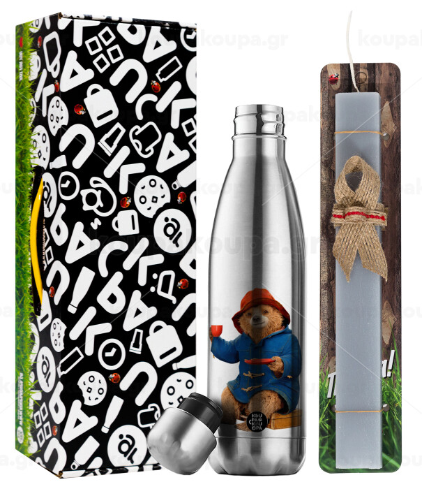 Αρκουδάκι Πάντινγκτον, Easter Set, metallic stainless thermos flask (500ml) & scented flat Easter candle (30cm) (GRAY)