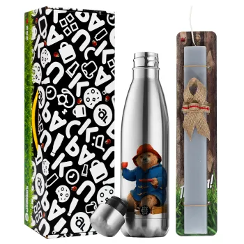 Αρκουδάκι Πάντινγκτον, Easter Set, metallic stainless thermos flask (500ml) & scented flat Easter candle (30cm) (GRAY)