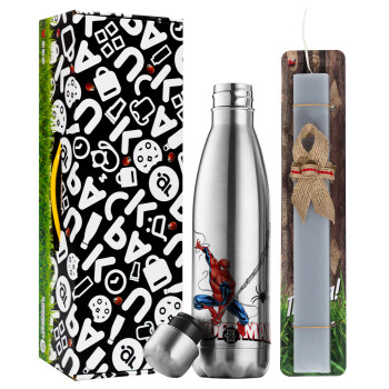 Αυτοκίνητα, Easter Set, metallic stainless thermos flask (500ml) & scented flat Easter candle (30cm) (GRAY)