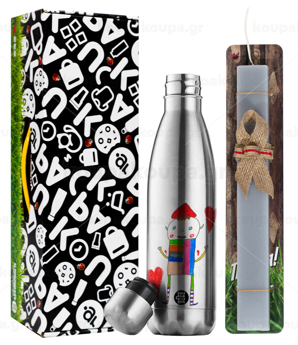 Ο Αλέξανδρος ζωγραφίζει την Αγάπη, Easter Set, metallic stainless thermos flask (500ml) & scented flat Easter candle (30cm) (GRAY)