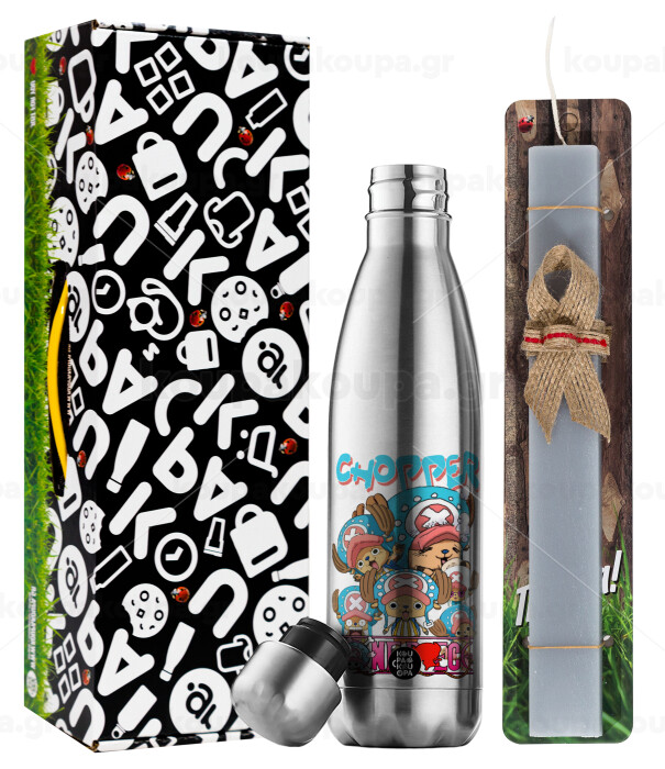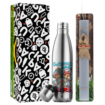 Chopper One Piece, Easter Set, metallic stainless thermos flask (500ml) & scented flat Easter candle (30cm) (GRAY)