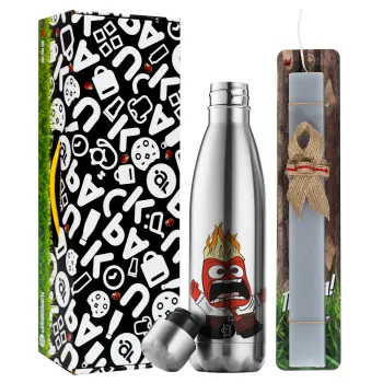 Inside Out Angry, Easter Set, metallic stainless thermos flask (500ml) & scented flat Easter candle (30cm) (GRAY)