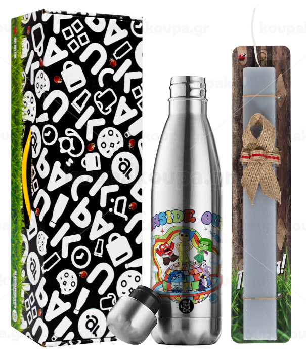 Inside Out, Easter Set, metallic stainless thermos flask (500ml) & scented flat Easter candle (30cm) (GRAY)
