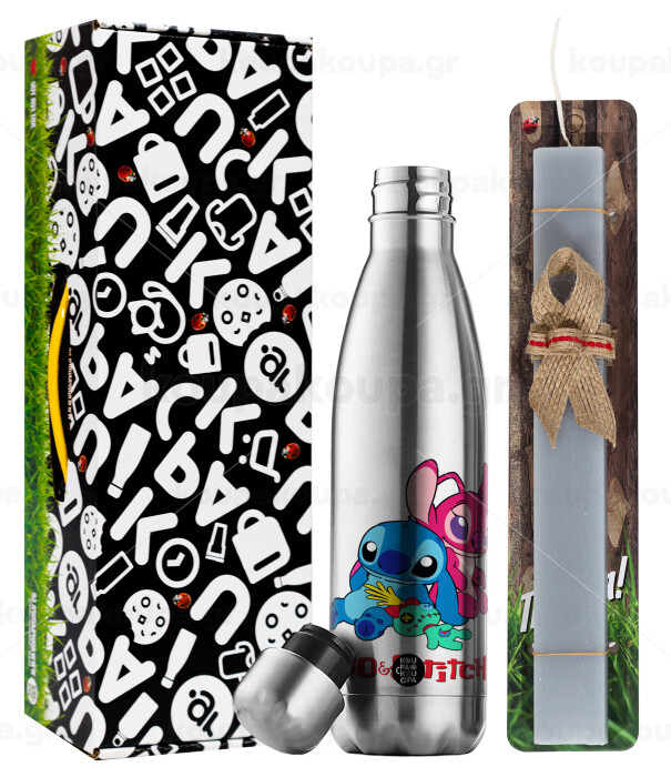 Lilo & Stitch, Easter Set, metallic stainless thermos flask (500ml) & scented flat Easter candle (30cm) (GRAY)