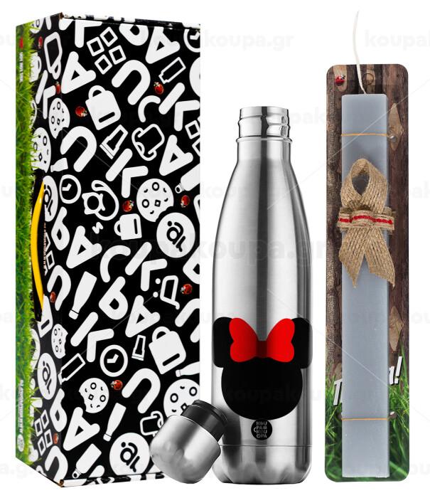 Minnie head, Easter Set, metallic stainless thermos flask (500ml) & scented flat Easter candle (30cm) (GRAY)