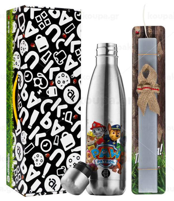PAW patrol, Easter Set, metallic stainless thermos flask (500ml) & scented flat Easter candle (30cm) (GRAY)