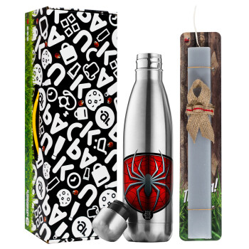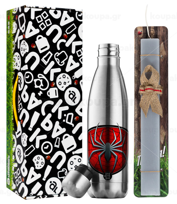 Spider-man, Easter Set, metallic stainless thermos flask (500ml) & scented flat Easter candle (30cm) (GRAY)