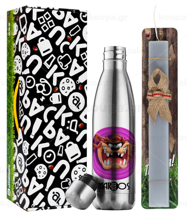 Taz, Easter Set, metallic stainless thermos flask (500ml) & scented flat Easter candle (30cm) (GRAY)