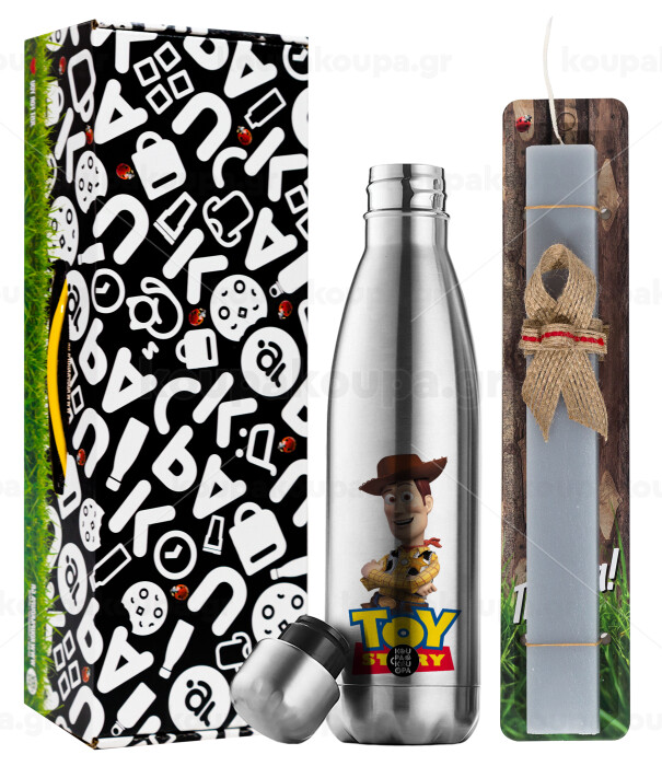 Woody cowboy, Easter Set, metallic stainless thermos flask (500ml) & scented flat Easter candle (30cm) (GRAY)