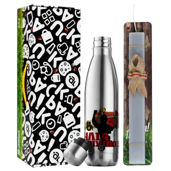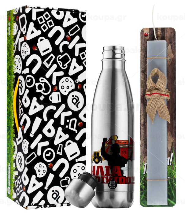 Ηλία ρίχτο!, Easter Set, metallic stainless thermos flask (500ml) & scented flat Easter candle (30cm) (GRAY)