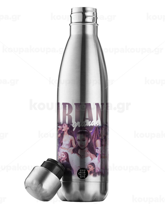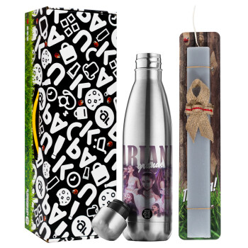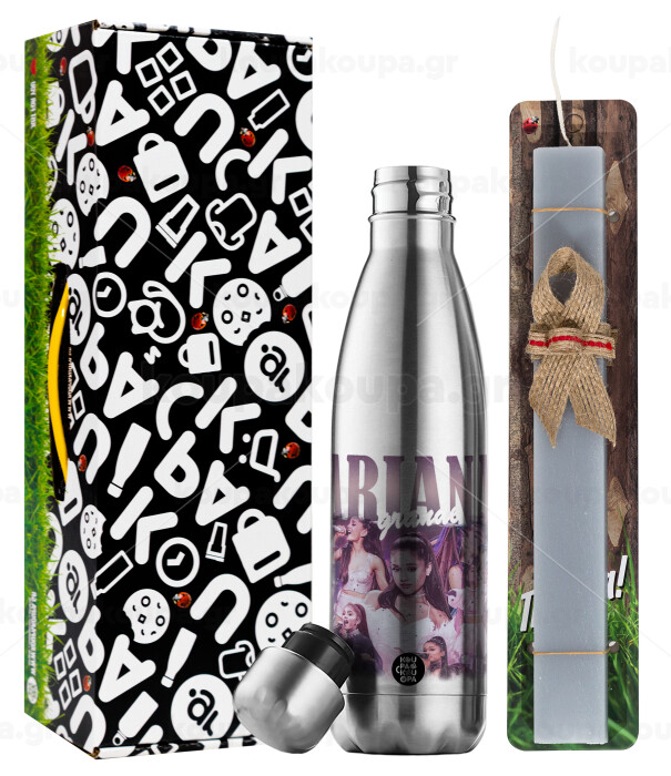 Ariana Grande, Easter Set, metallic stainless thermos flask (500ml) & scented flat Easter candle (30cm) (GRAY)