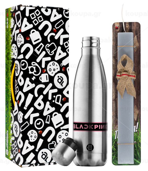 BLACKPINK, Easter Set, metallic stainless thermos flask (500ml) & scented flat Easter candle (30cm) (GRAY)