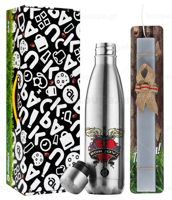 Bon Jovi, Easter Set, metallic stainless thermos flask (500ml) & scented flat Easter candle (30cm) (GRAY)