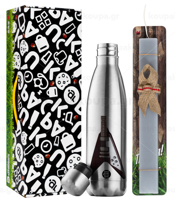 Guitar flying V, Easter Set, metallic stainless thermos flask (500ml) & scented flat Easter candle (30cm) (GRAY)