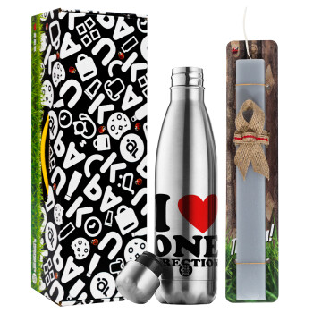 I Love, One Direction, Easter Set, metallic stainless thermos flask (500ml) & scented flat Easter candle (30cm) (GRAY)