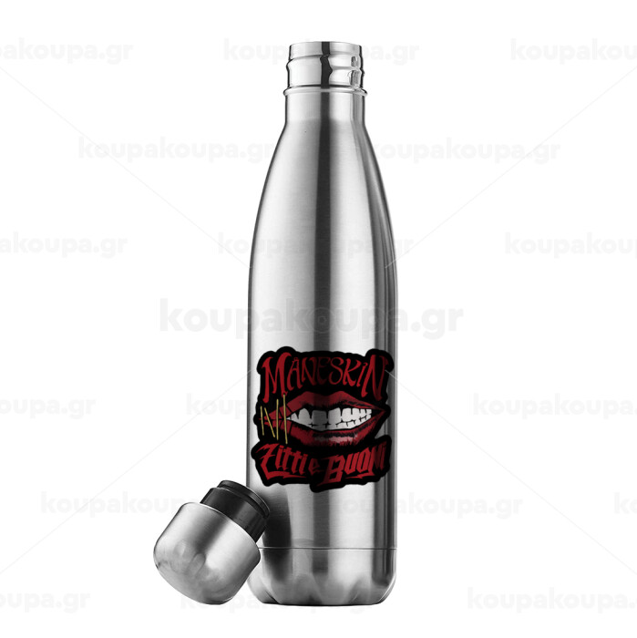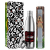 Maneskin lips, Easter Set, metallic stainless thermos flask (500ml) & scented flat Easter candle (30cm) (GRAY)