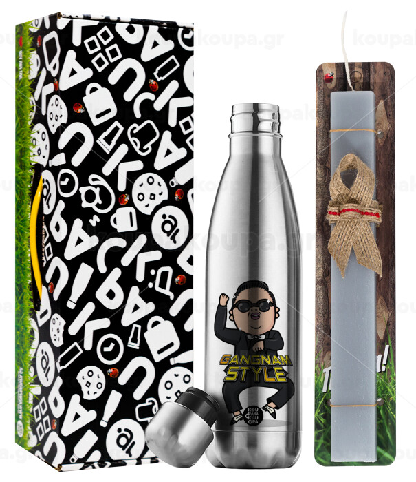 PSY - GANGNAM STYLE, Easter Set, metallic stainless thermos flask (500ml) & scented flat Easter candle (30cm) (GRAY)