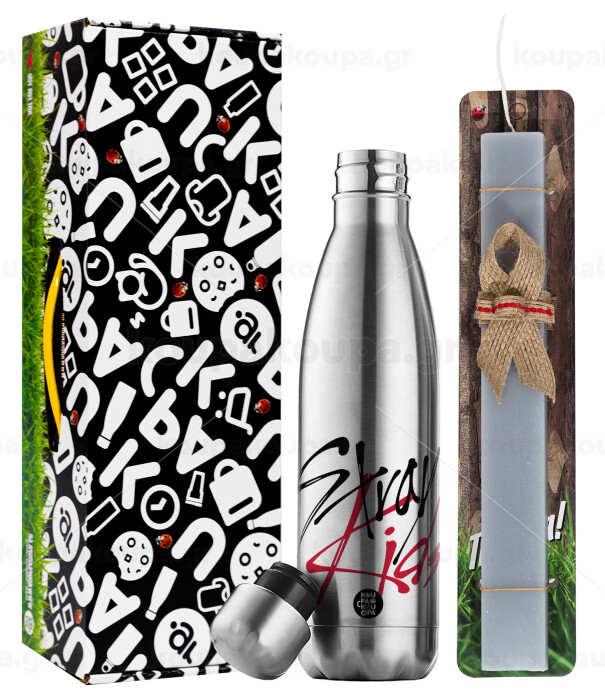 Stray Kids, Easter Set, metallic stainless thermos flask (500ml) & scented flat Easter candle (30cm) (GRAY)