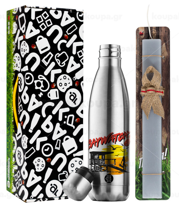 Baywatch, Easter Set, metallic stainless thermos flask (500ml) & scented flat Easter candle (30cm) (GRAY)