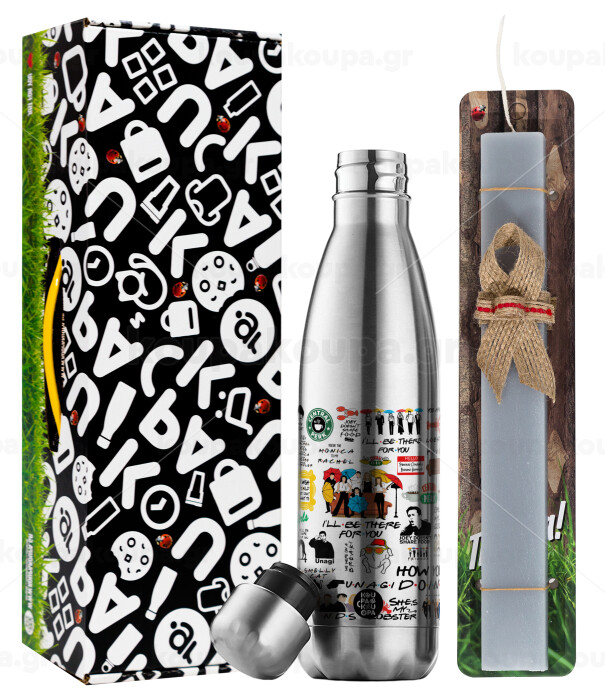 Friends, Easter Set, metallic stainless thermos flask (500ml) & scented flat Easter candle (30cm) (GRAY)