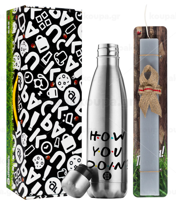 Friends How You Doin'?, Easter Set, metallic stainless thermos flask (500ml) & scented flat Easter candle (30cm) (GRAY)