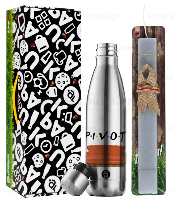 Friends Pivot, Easter Set, metallic stainless thermos flask (500ml) & scented flat Easter candle (30cm) (GRAY)