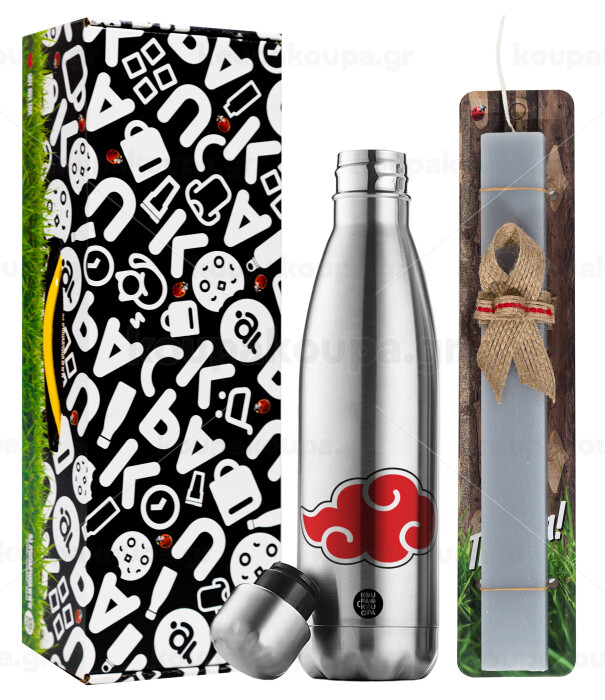 Naruto Akatsuki Cloud, Easter Set, metallic stainless thermos flask (500ml) & scented flat Easter candle (30cm) (GRAY)