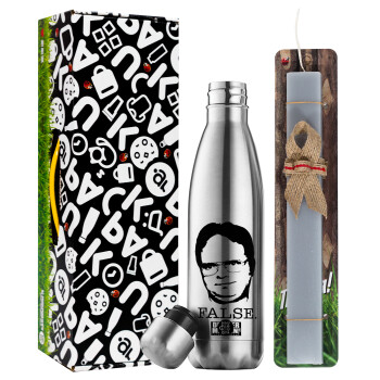 The office Dwight, Easter Set, metallic stainless thermos flask (500ml) & scented flat Easter candle (30cm) (GRAY)