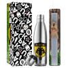 ΑΕΚ, Easter Set, metallic stainless thermos flask (500ml) & scented flat Easter candle (30cm) (GRAY)