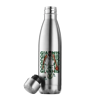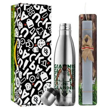 Giannis Antetokounmpo, Easter Set, metallic stainless thermos flask (500ml) & scented flat Easter candle (30cm) (GRAY)