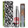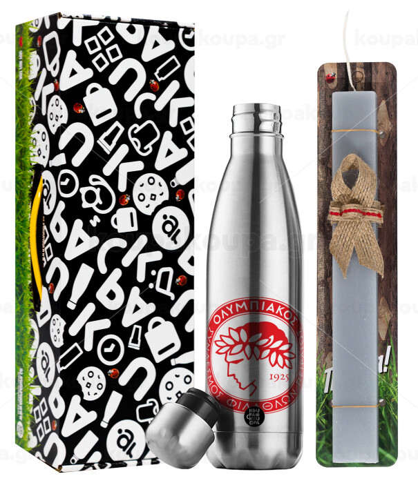 Ολυμπιακός, Easter Set, metallic stainless thermos flask (500ml) & scented flat Easter candle (30cm) (GRAY)